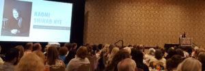 One of the many perks of this conference were the keynote speakers who distributed copies of their books. For the Saturday luncheon, we heard an inspiring talk by Naomi Shihab Nye and received her most recent book of poetry, Voices in the Air: Poems for Listeners.