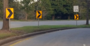 First, there are the helpful arrows. These tell us which way to go and they don’t give us any choices or options. Whenever you drive down a street with these kinds of arrows, you not only know that the road curves, but you also know that you are traveling in the correct direction. I see this. I breathe a sigh of relief and then slow down to the posted speed limit.