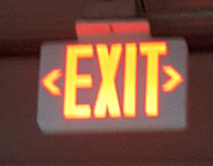 As you can see, the Exit sign confused me so much that I couldn’t even take a picture that was in focus. If the building is burning, which way do I go? Or do I risk burning up, because I can’t decide between right or left. I need more specific instructions.