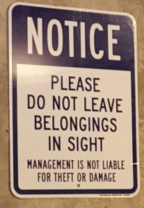 I find that most of the time “Management” never likes to be liable for things like theft or damage. If you need a reminder not to leave your new purchases, laptop or phone in plain view in your car, then maybe you shouldn’t live in a big city.