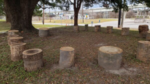 Of course. everyone has heard that the Elder Street Lofts is haunted from all of the graves that are buried under the buildings, depots, and streets. I guess that is why there is this circle of tree stumps. This gives the ghosts a nice place to gather at night and catch up on the day’s news. When the City Cemetery first began way back when, it was located on the outskirts of the city. Now it is just to one side of downtown. I hope the ethereal residents have enjoyed watching all the activity.