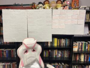 Discovery and Design work intermingle, my wall space is covered in the pieces that help me move my project forward, and the work of digging in and writing takes priority. The retreat is broken up into two sessions. When I first started attending, I could only do one session — a ten day push. The retreat was in person and travel and stay in Boulder made the expense impossible to sustain for a whole month.