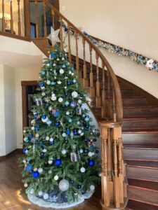 These past two years, since my divorce, I was able to convince the family to let me decorate the tree with a color palette base of silver and white with one other color for effect. And the trees have looked amazing! Last year, we went with red as the focal color, and this year’s tree we did in blue. Blue always felt more Christmas for me since winter feels like a blue color for some reason to me.