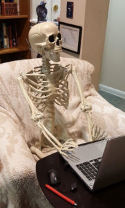 Here are a few of my friends just sitting outside enjoying the beautiful (for Houston) Fall weather. As long as the days are sunny and the temperatures stay below 95 degrees, I decree that Autumn has arrived. Up until now these skeletal folk have remained pretty quiet. That’s all going to change this weekend. I have lights and I have sound effects and I intend to use them! It used to be that I never saw Halloween decorations in the stores until September. This year I found really cool stuff out early — which is fine as far as Halloween is concerned. For years people have chided me for decorating too early or too much. My dreams have come true. I am now the crazy old cat lady with just a few too many skeletons and I don’t care. Enjoy!