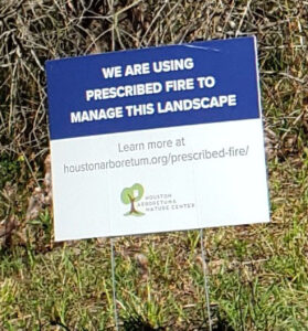 This year, while strolling the Arboretum, I found a most unusual sign. No, I don’t consider it a sign from the Universe, but an interesting sign to be sure. In case you can’t read this, it says, “We Are Using Prescribed Fire To Manage This Landscape”. I have never seen this sign before during all of my nature strolls in this lush landscape. I have to admit it was a lot cuter when they brought in goats to trim some of the wild growth around the area. Goats draw crowds of walkers, hikers, and families. Fire is not so cute, but apparently necessary. I only worry that this is a sign that Houston is flirting with drought conditions and we are preparing for possible wild fires within city limits. My, what interesting times we live in here in 2022.