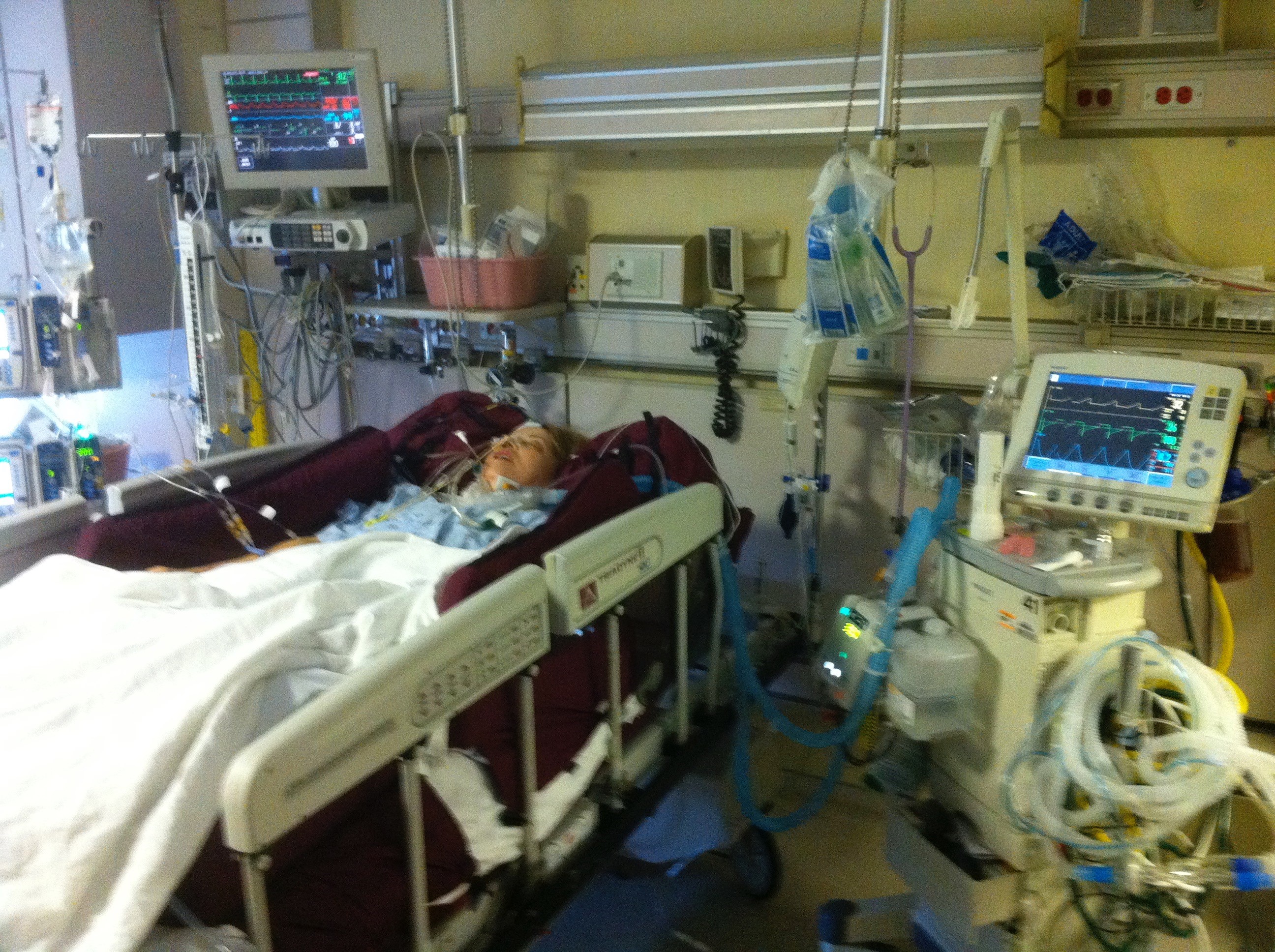 Doctors put me in a percussion bed. It rotates as it thumps your backside. The neuro team induced a coma.