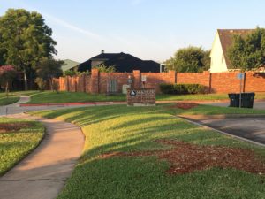 Right around the corner surrounding a trifecta of trees.